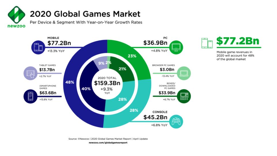 That’s according to the 2020 Global Games Market Report from market intelligence firm Newzoo.”